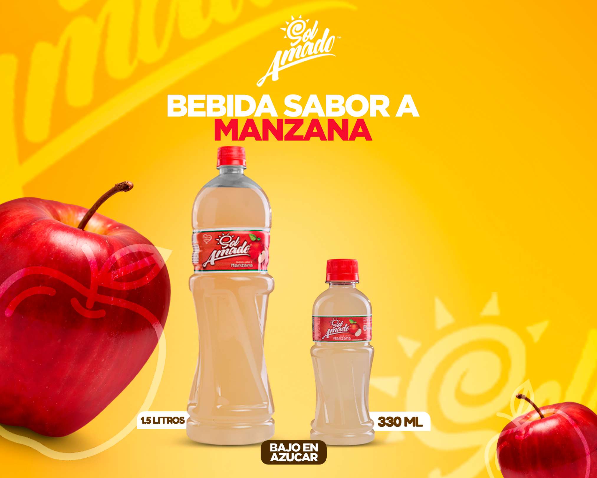 Agua tratada, sabor idéntico al natural de manzana, azúcar, ácido cítrico, sucralosa, goma xantana, sorbato de potasio, benzoato de sodio, tartrazina, caramelo y sal.