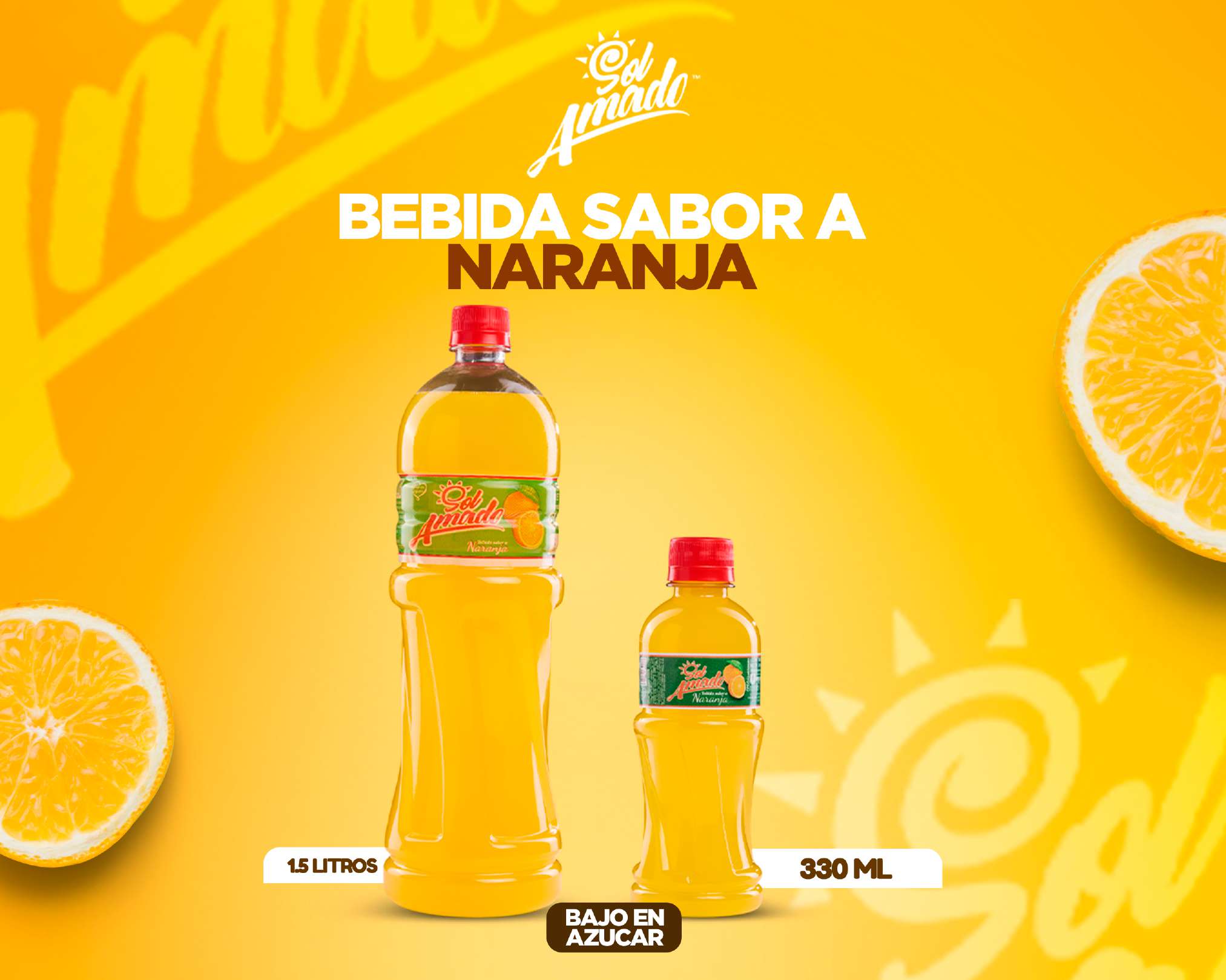 Agua potable tratada, azúcar, saborizante natural naranja, ácido cítrico, goma xantana, sucralosa, sórbato de potasio, benzoato de sodio, amarillo ocaso y tartrazina.
